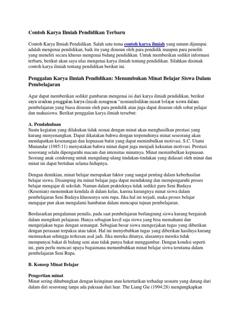 Di mana, penjabaran ini dilakukan tidak secara umum, namun secara jelas dan detail. Ulangan umum bertujuan untuk mengetahui sejauhmana tujuan pembelajaran pada sejulah program pembelajaran dalam satu semester/catur wulan telah tercapai. Isi dari artikel lebih besar menampilkan pendapat atau sudut . Upaya peningkatan peran guru pendidikan kewarganegaraan dengan cara: Ini 9+ contoh artikel pendidikan singkat ⏩ artikel pendidikan di indonesia ☑️ karakter siswa ☑️ semangat belajar ☑️ dan religi.